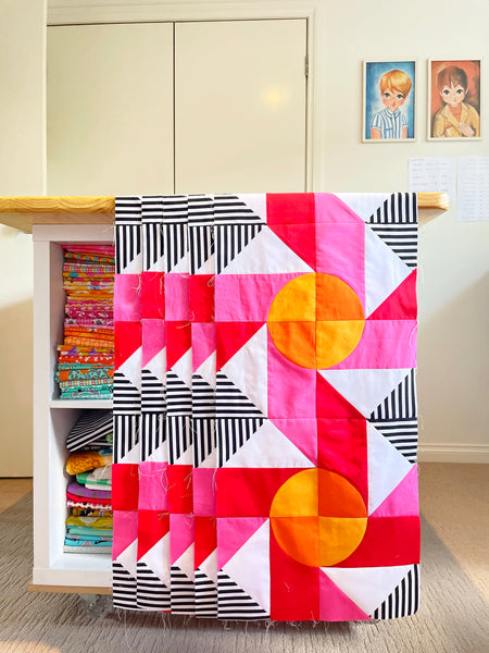This version 2 was released shortly after that featured a selection of plains and stripes and has completely different cutting and piecing instructions. This version of the pattern also includes a colouring sheet to make choosing your fabrics so much easier.