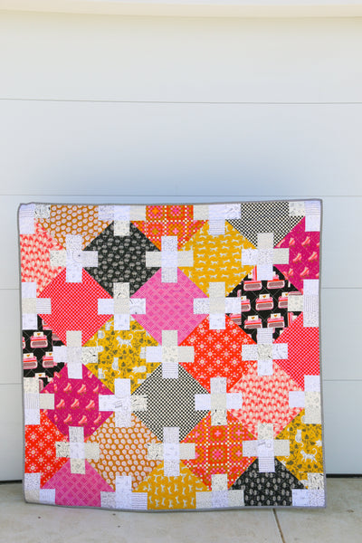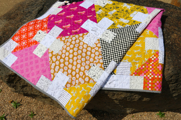 The two smaller sizes in this pattern are Fat Quarter friendly and the Large throw uses 1/2 yards. The quilt is perfect for showcasing large scale prints that you don't want to cut up. Easy diagrams and colouring sheets are included to make planning your quilt that little bit easier. There are also suggested layouts for all three sizes and fabric swatches.