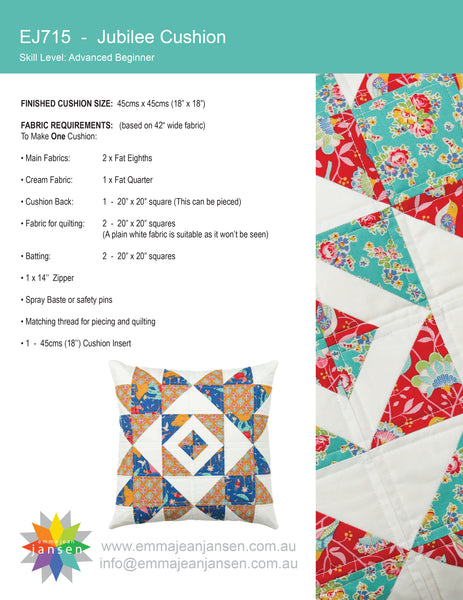 The Jubilee Cushion is a great addition to any couch or cosy reading chair. With easy to follow instructions you will be making lots of these cushions to show off your favourite fabric ranges.