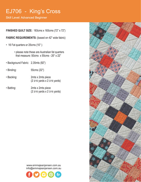 A fabulous modern quilt pattern that is fun to make and will look great in any fabric range. This quilt is also Metric Fat Quarter friendly. (20" x 21")