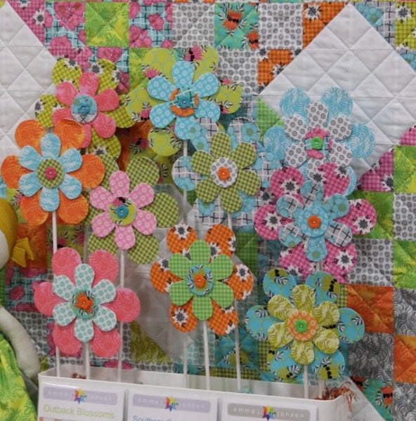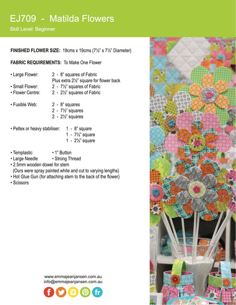 These flowers are a quick fun project to showcase your favourite fabric range. Make a whole bunch or sew together to create a floral bunting!