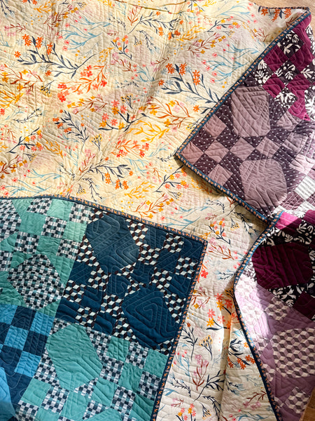 This quilt has been used as a sample and may have spent time in a shop and being photographed. No obvious marks are present unless mentioned. The quilt has not been washed.