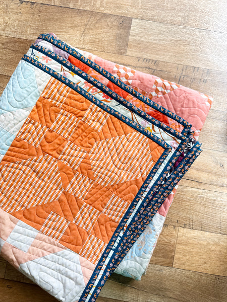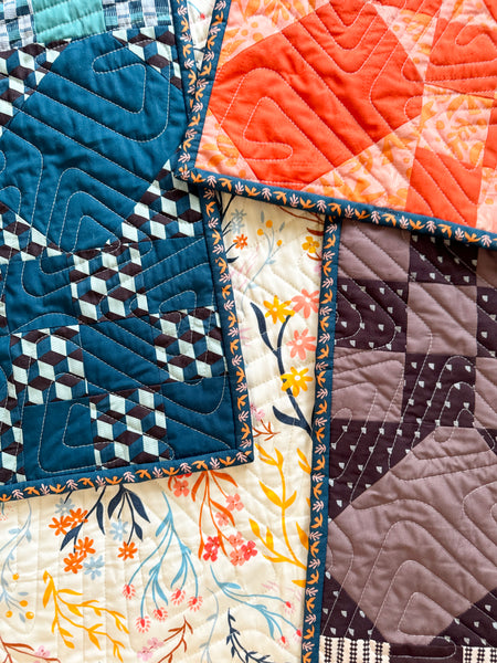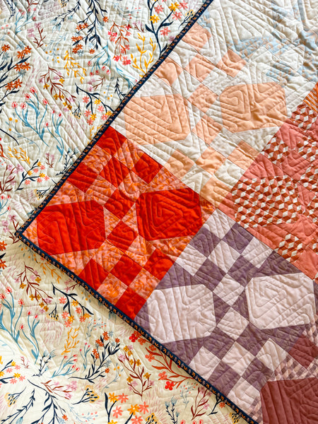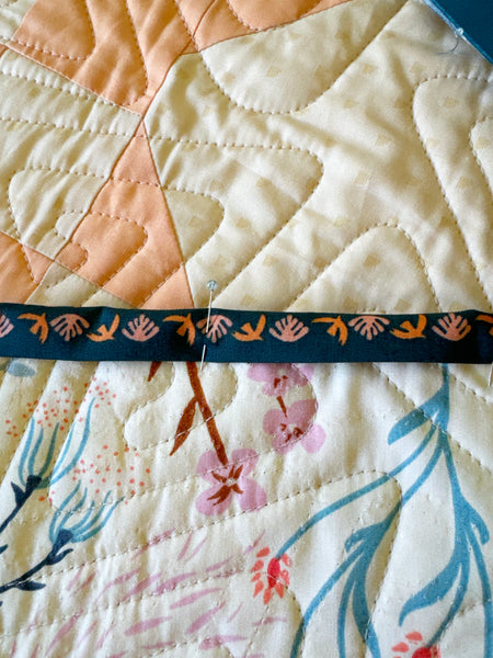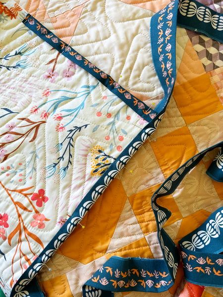 This quilt also has an Art Gallery Fabrics backing and macthing binding from the Duval range. A hanging sleeve has been sewn into the binding.