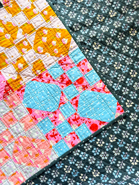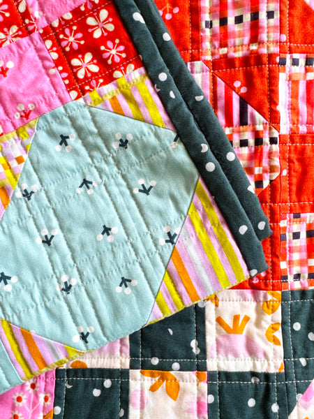 The backing and binding fabric are also from the Petunia range and a hanging sleeve has sewn into the binding.