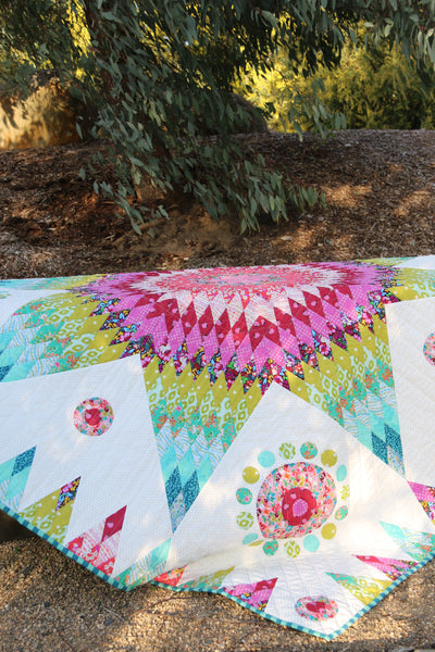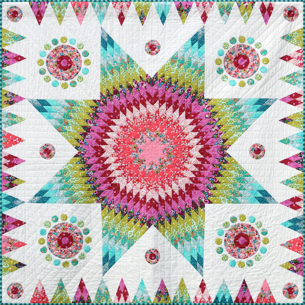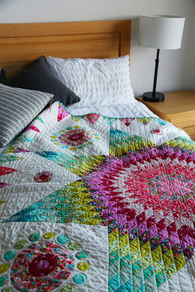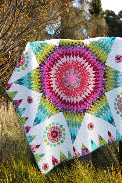 Orbital Star is a fabulous quilt to use as an introduction to the timeless Lone Star quilt pattern. This quilt is suited to the more advanced sewer and features a strip piecing method for the star. The applique is done using needleturn but could easily be adapted to your preferred method. The pattern includes lots of diagrams, step by step illustrations and a colouring sheet.