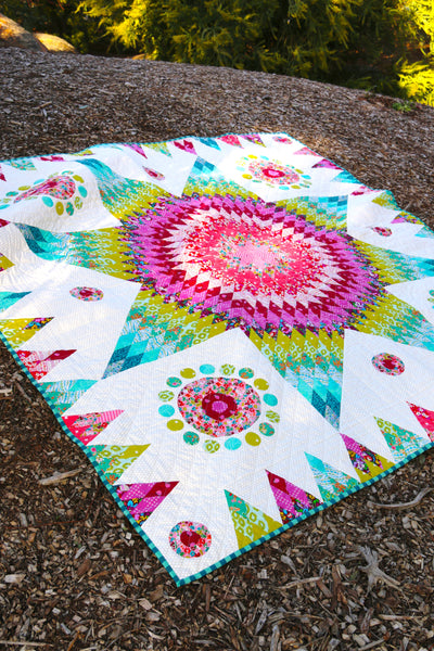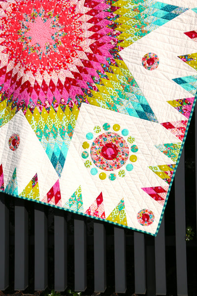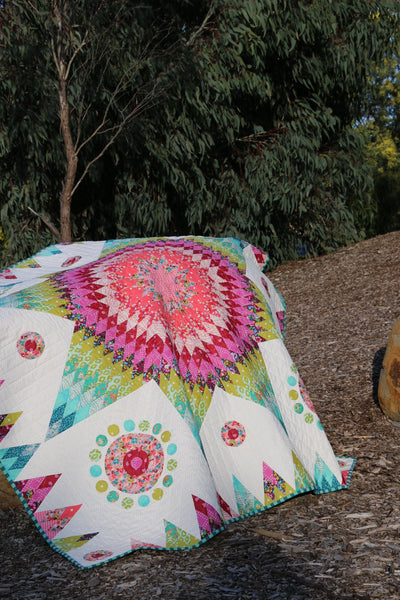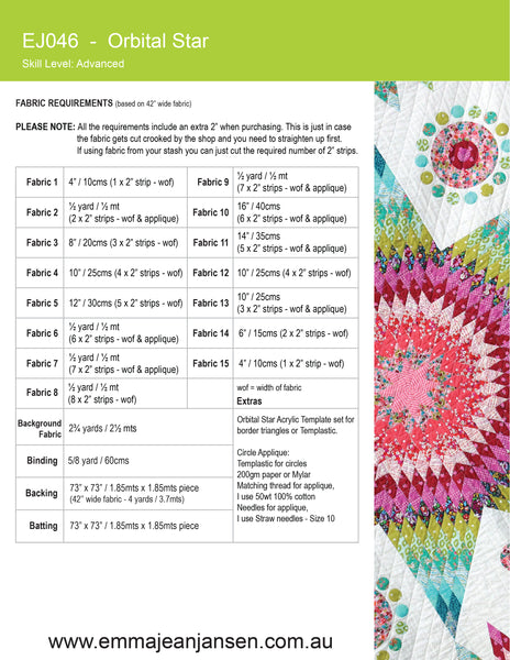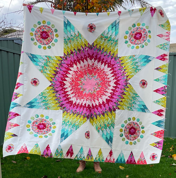 Orbital Star is a fabulous quilt to use as an introduction to the timeless Lone Star quilt pattern. This quilt is suited to the more advanced sewer and features a strip piecing method for the star. The applique is done using needleturn but could easily be adapted to your preferred method. The pattern includes lots of diagrams, step by step illustrations and a colouring sheet.