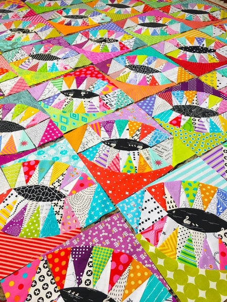 The Pickled Orange Peel Quilt is a fabulous quilt to make a big dent in your stash! This quilt is suited to the more advanced sewer featuring Foundation Piecing using the “freezer paper” method. This quilt can also be pieced using your preferred method of Foundation Piecing. The pattern includes diagrams, step by step photos and a colouring sheet.