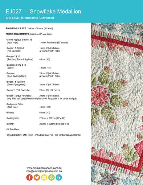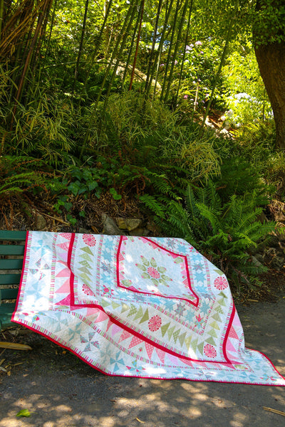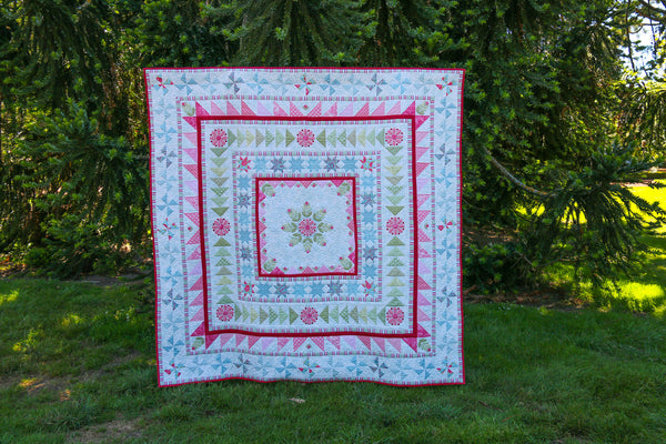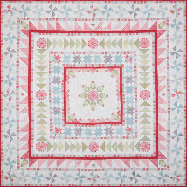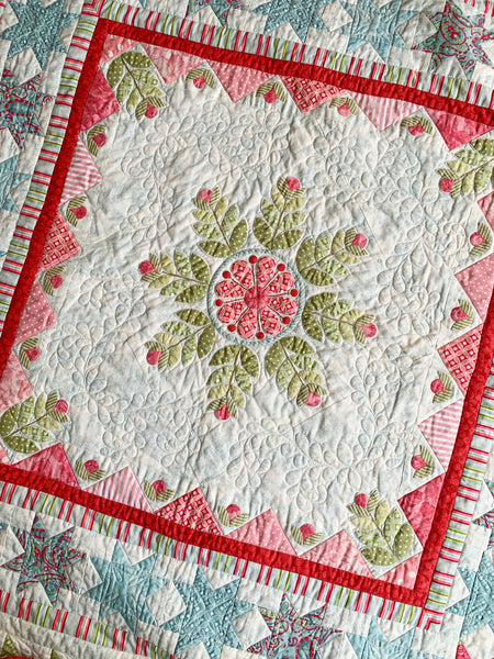 This stunning medallion quilt design features an appliqué centre and some more applique in the borders. Quick methods are used in the border piecing and also mitred corners are an extra special touch. This is a big project but one that you will enjoy making.