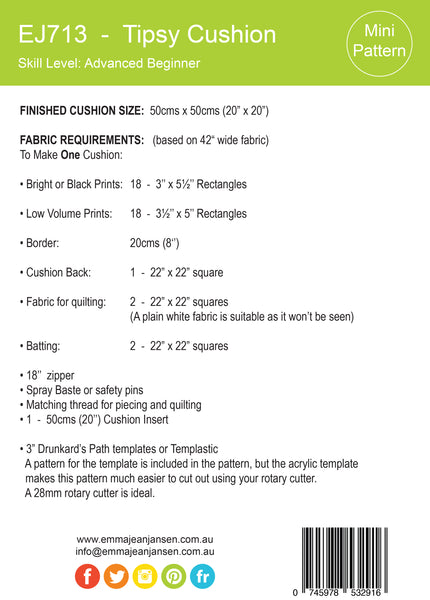You may sell cushions made using this pattern on a small independent scale. Please credit the pattern to Emma Jean Jansen.