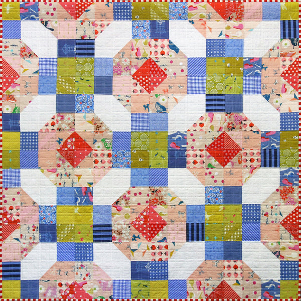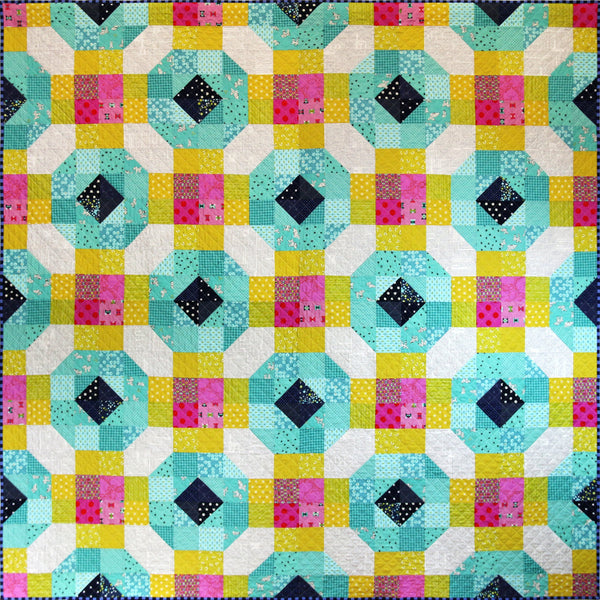 Have fun making this stunningly simple quilt which comes in two sizes. It features instructions for Half Square Triangles which make it a quick quilt to piece together. The pattern also includes two different construction method and a colouring sheet.