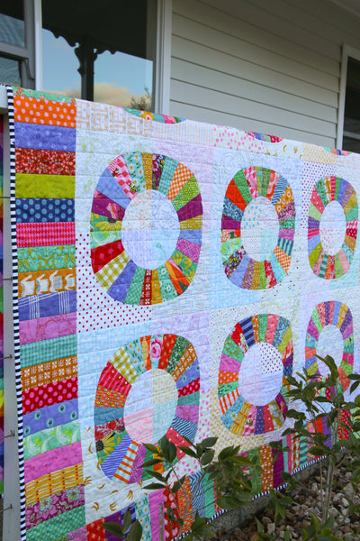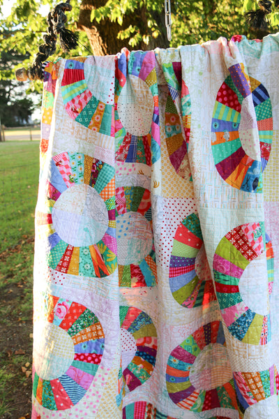 The Wheels of Fortune quilt pattern is a great introduction to both freezer paper foundation piecing and sewing curves. The pattern includes instructions for 3 different sizes and a colouring sheet for each size too. The pattern has lots of diagrams and also step by step photos for the foundation piecing instructions.