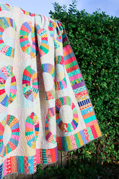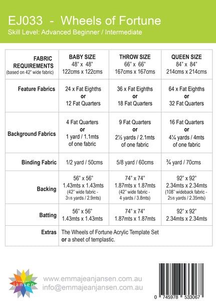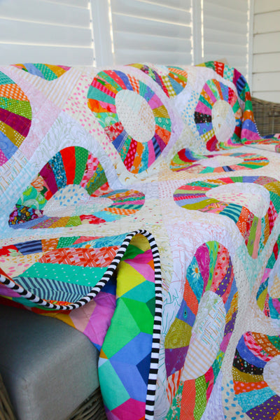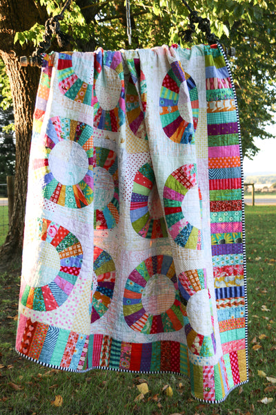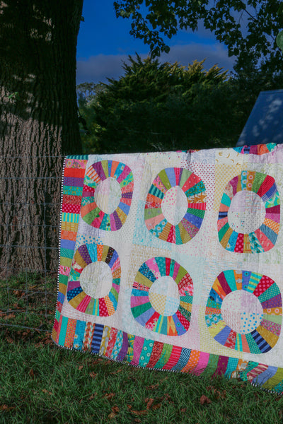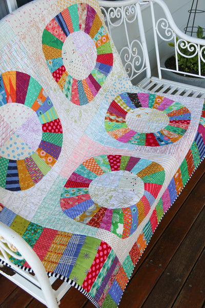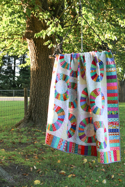 The Wheels of Fortune quilt pattern is a great introduction to both freezer paper foundation piecing and sewing curves. The pattern includes instructions for 3 different sizes and a colouring sheet for each size too. The pattern has lots of diagrams and also step by step photos for the foundation piecing instructions.