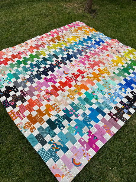 A quick and simple quilt made using 5’’ charm squares. Would also be a fabulous stash busting quilt.